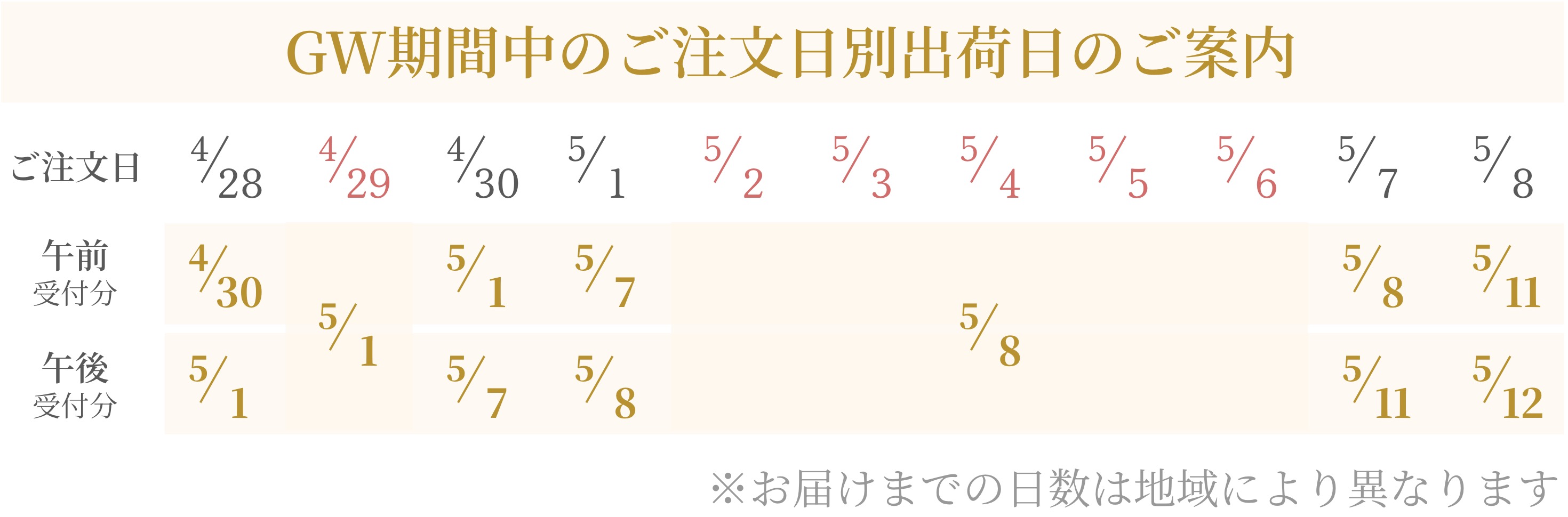 ◎休業期間中にいただきましたご注文につきましては、 休業明け営業日に順次出荷させていただきます。